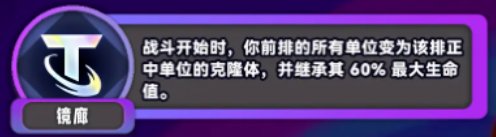 战斗开始时,你前排的所有单位变为该排正中单位的克隆体,并继承其60%最大生命值。