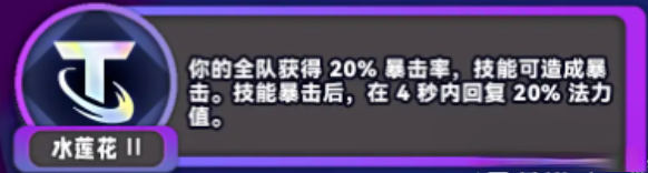 你的全队获得20%暴击率,技能可造成暴击。技能暴击后,在4秒内回复20%法力值。