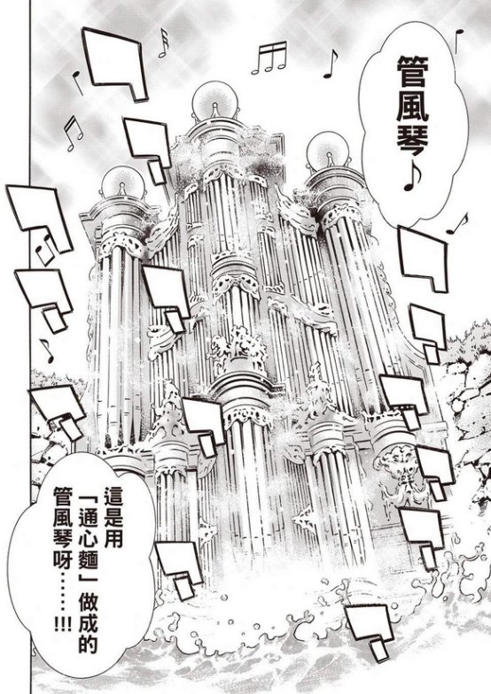 反派这边做了什么呢?一个巨大的由通心面组成的管风琴,每一根面里都塞着不同的酱汁,象征着每一根管都有不同的音色。