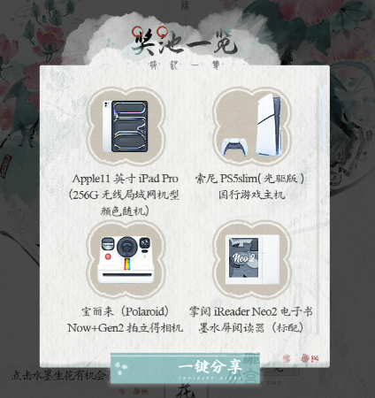 完成网页活动任务,即可定制专属国风画卷,领取钻石、共鸣水晶等多重游戏道具。还有机会赢iPadPro/PS5/拍立得/精美周边等好礼!