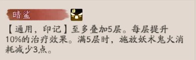 【通用,印记】至多叠加5层。每层提升10%的治疗效果。满5层时,施放妖术鬼火消耗减少3点。