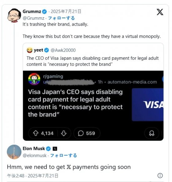 所以综上所述,我的观点依然和上一次dlsite事件保持一致。如果是因为“血缘近亲”题材导致欧美法律法规无法准入,那么最正当的手段是在欧美对应国家的商店下架游戏。但visa和Mastercard这两家占据绝对线上支付份额的巨鳄的举动却是在全球范围内“抹消”这些游戏,甚至连亚服和日本用户占据绝对主流的Dlsite也不放过,这本质上就是一种文化霸凌和达成实质垄断后的威胁行为。