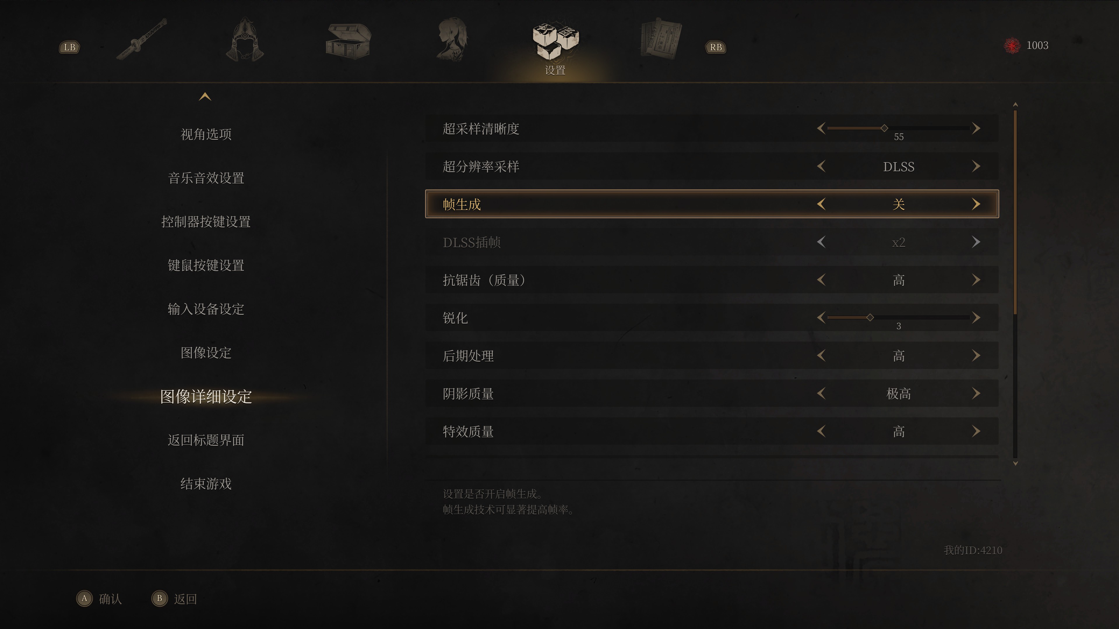 tips:小白超采样不要动,默认给你多少就多少,别手欠给拉100(除非你对硬件非常了解或者是富哥用着5090呢),超采100是DLAA相当于2K变4K,4K变8K。