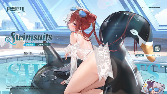 依旧是经典的泳装款式,白色半透明的款式,配合一些沾水的效果,展现出来的效果意外的很不错,这里还有额外的和应瑞小互动的彩蛋,看着格外的有趣和喜感。