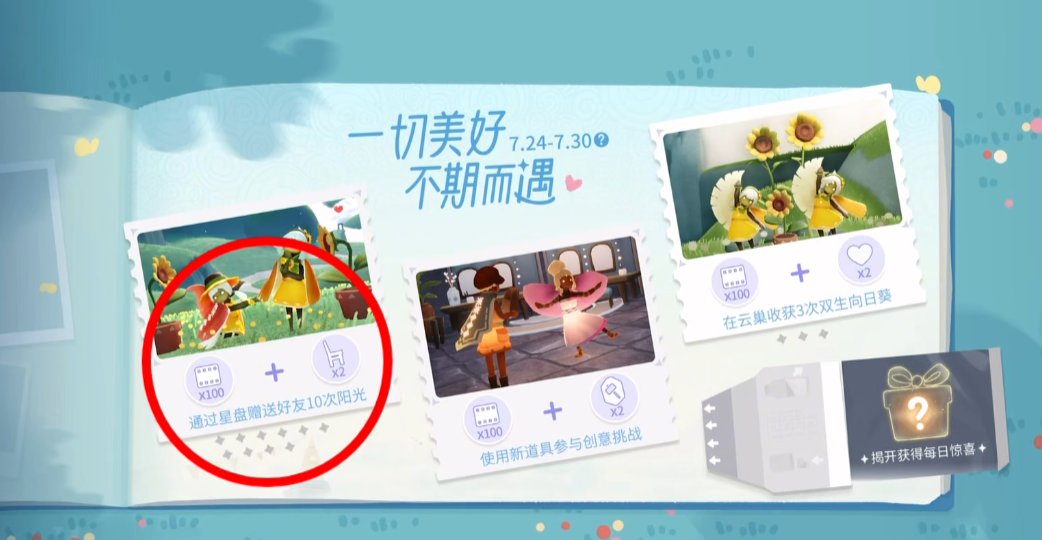 第一个任务需要玩家通过星盘和好友进行赠送10次阳光