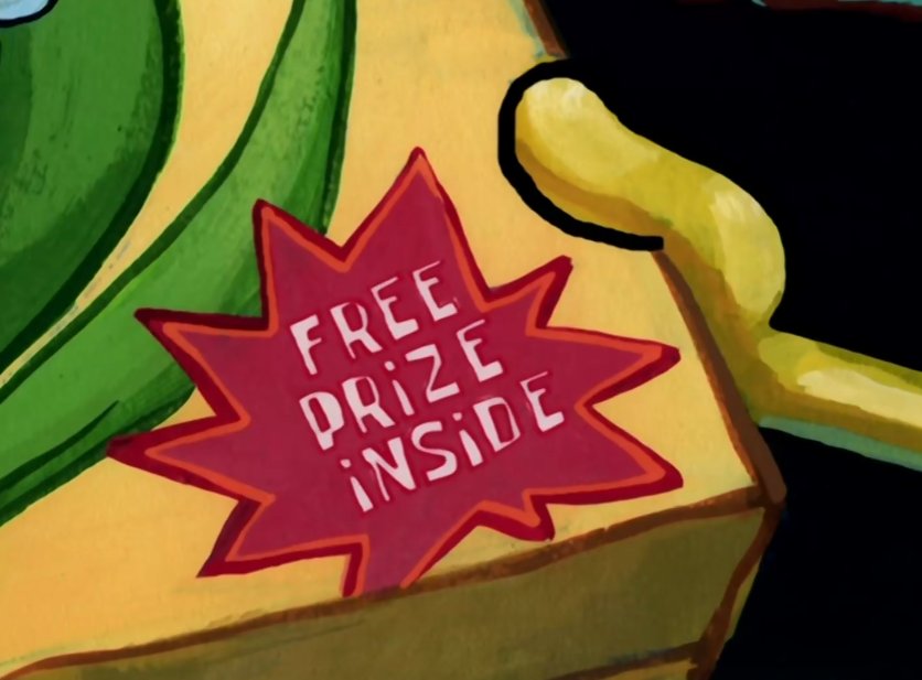 又比如在央配版《海绵宝宝》等待奖品那一集,就把“免费赠品”给翻译成了“自由的普利兹奖”。