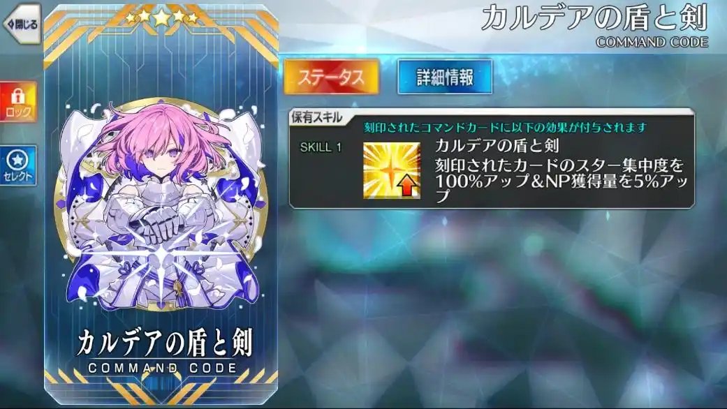 通关后获得的纹章是【迦勒底的盾与剑】,效果是刻印该纹章的指令卡暴击星集中度提升100%,NP获得量提升5%,效果比较一般,适合收藏。