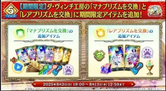 同时达芬奇商店额外追加一次每月可兑换的各种奖励,呼符可额外兑换10个,并且绿方块商店新增灵脉石的兑换。