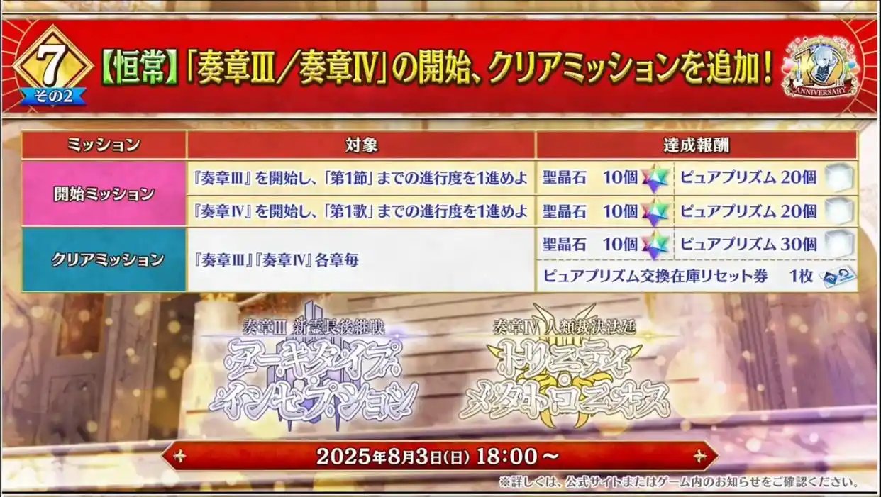 第二部终章将于今年12月20日开启,在终章开启之前,通关奏章4,可以获得1000个圣晶石。这个石头的领取时间是从8月3日持续到12月27日。
