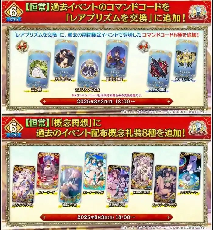 金方块商店上架御主礼装【热带夏日】和【第五真实元素环境用迦勒底制服】