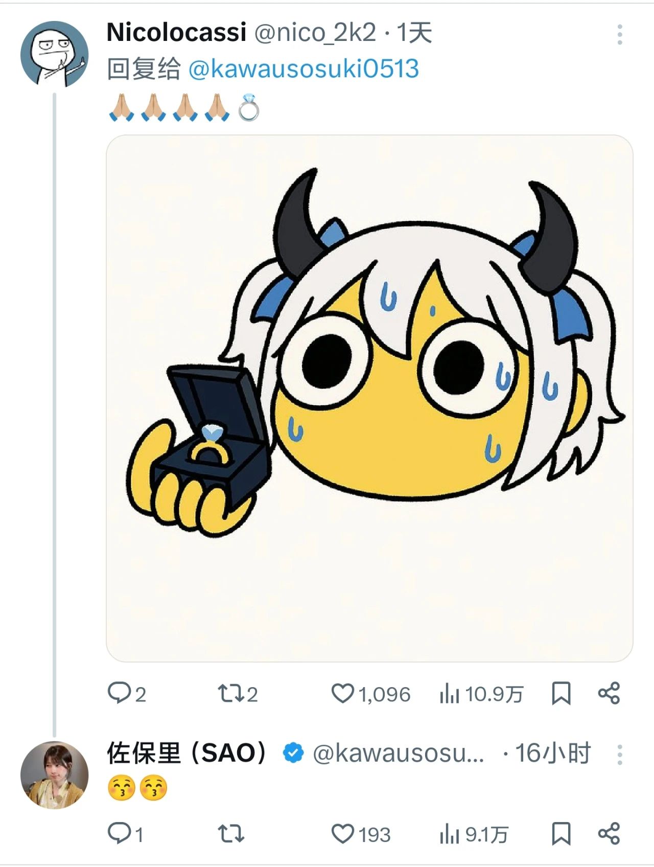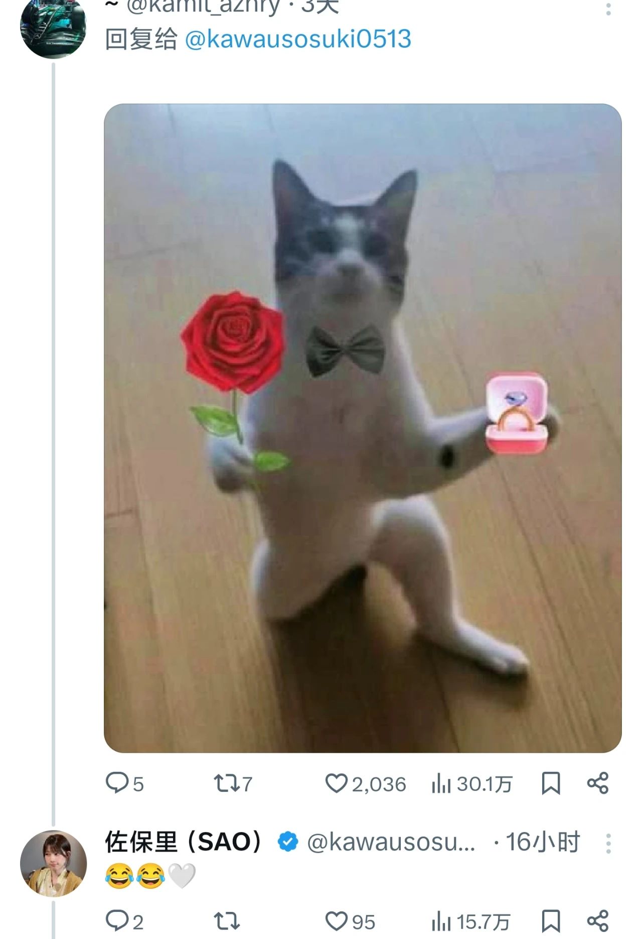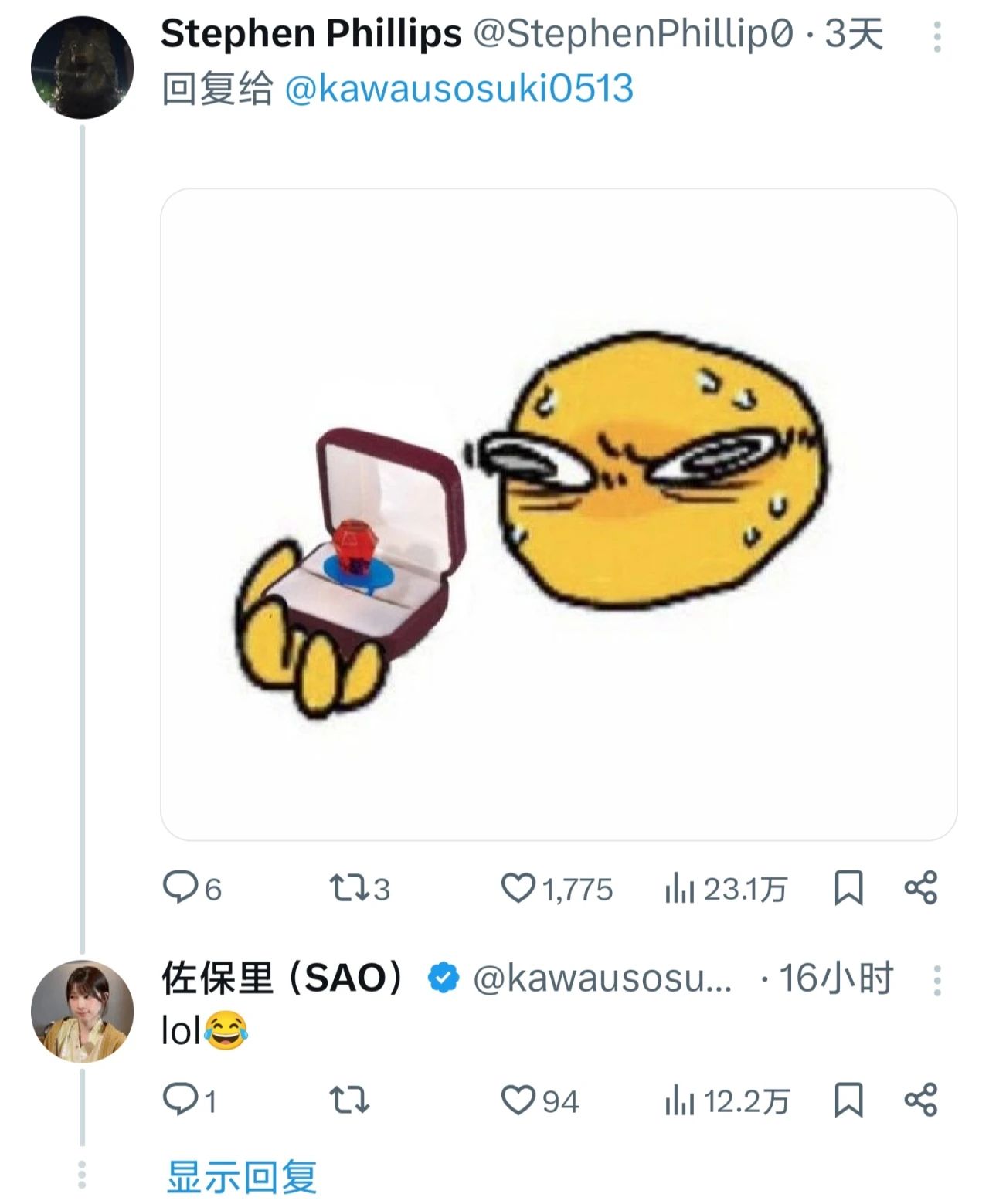 其实不仅仅是统计数据,从原推下面的评论区也可以看出许多明显是欧美ID的用户,疯狂的搁下面“打榜”,并用各种梗图送戒指求婚。