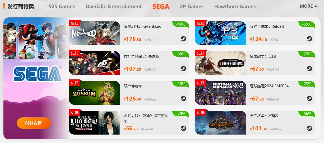 SEGA发行商暑期特惠