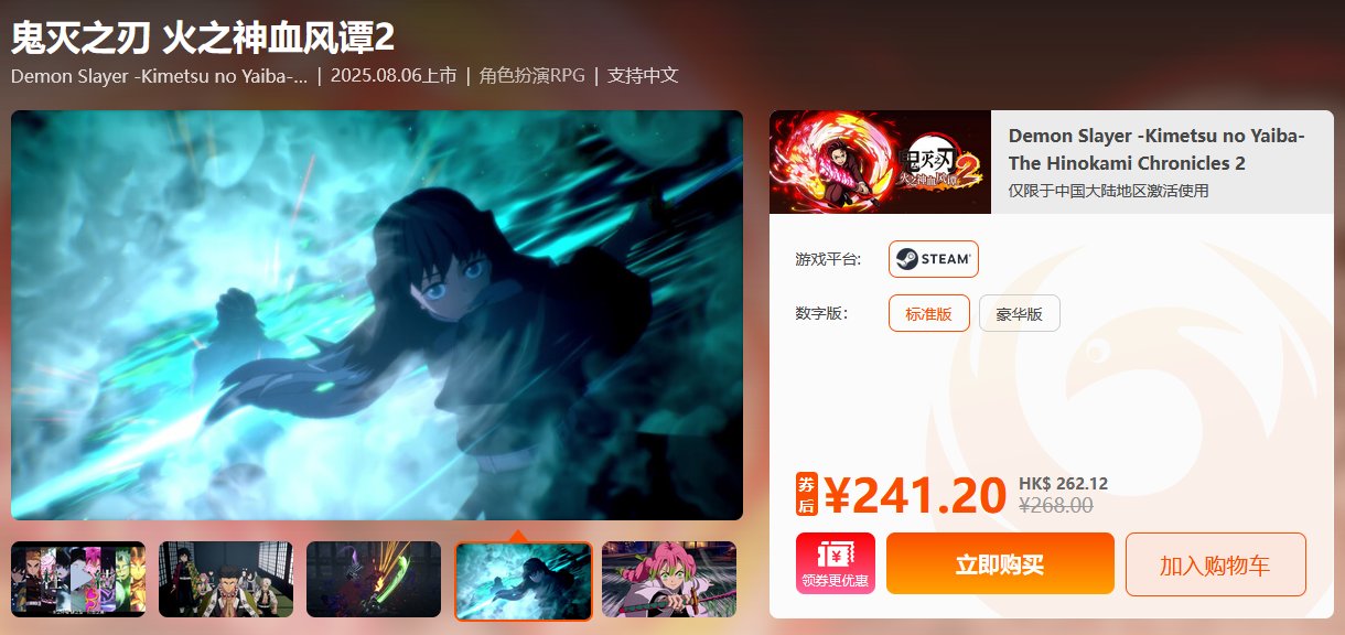 《鬼灭之刃 火之神血风谭2》新游上市 9折特惠