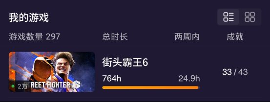 过去两周,我花费了将近25个小时在《街霸6》上,光上一周就占了差不多20个小时,以至于那些经常和我开黑的好基友们问我:你上周去干嘛了,好久都没见你上线了。