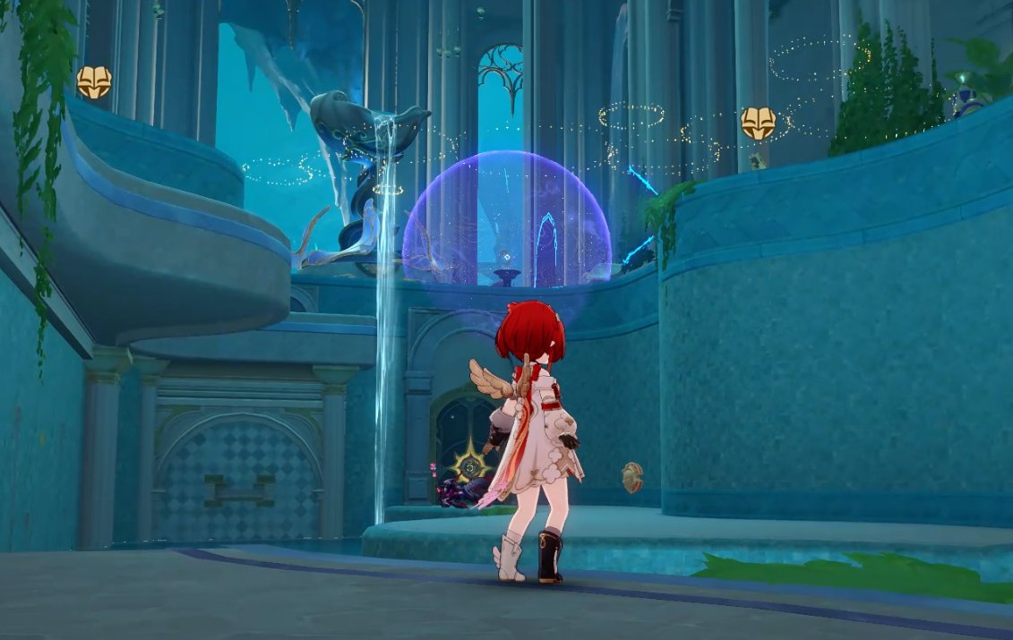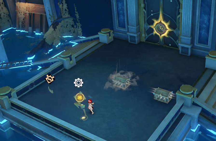 这次的是在水下,需要玩家先前往眠宫长廊,然后通过左侧的电梯先前往2层(在电梯边上有祷言,需要拿一下),通过二楼的机关前往右边的电梯,再坐电梯下到1楼,通过时间回流将下方水池的水降到中层。