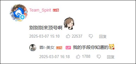 当时也是惊动了Donk所属的战队Spirit,官方也开始跟着下场玩梗,评论区直接喊话叫她来顶Donk的号。