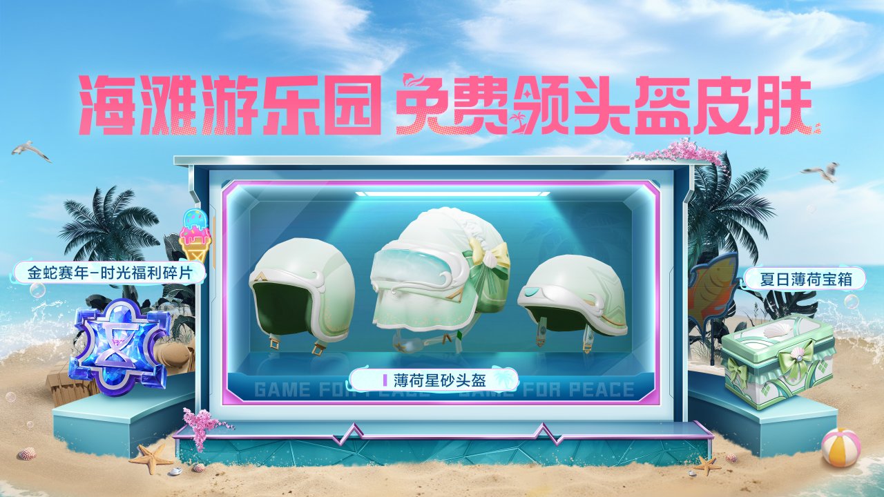 完成每日任务与海滩小游戏:泡泡派对、冰淇淋叠叠乐、海滩烤鱼王,累计获得指定数量贝壳币后,可领取全套薄荷星砂头盔皮肤!