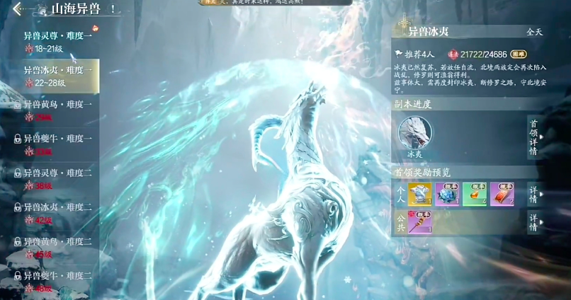 玩家先拿下异兽灵尊,之后成功通关后,玩家在点开奇遇任务栏,就可以直接在追踪中找到这个被击败的异兽,按照追踪提示完成相关奇遇任务,就能够成功拿下异兽灵尊。而另一只异兽冰夷的打法,也是通过这种模式。