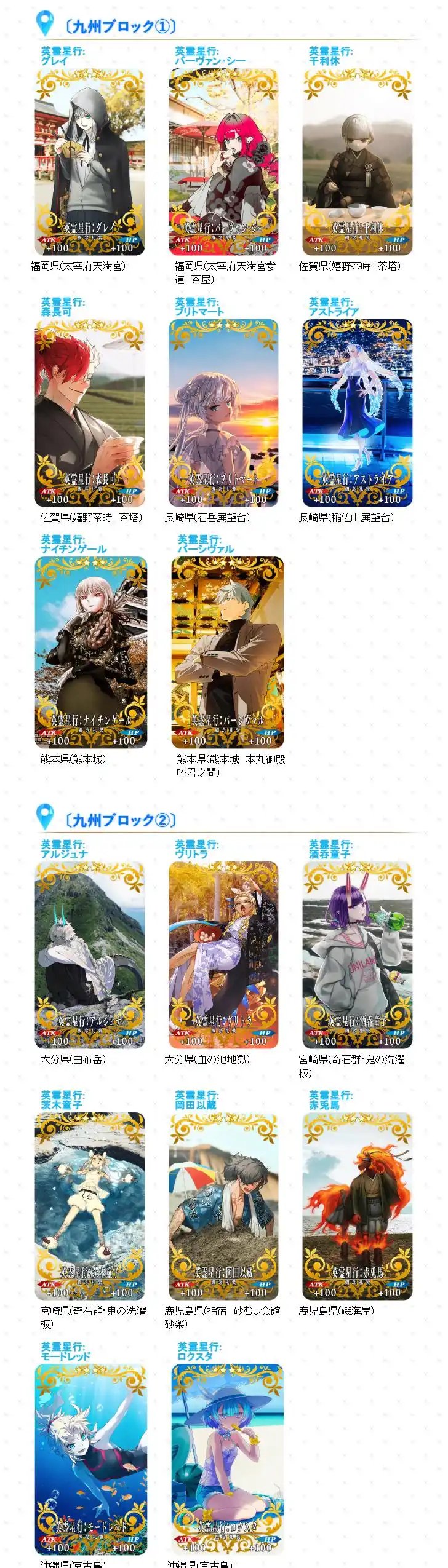 礼装方面,依旧是按地区分成2部分,卡池分成全UP卡池、九州一池和九州二池,礼装总UP率为56%,比起之前的18张,这次只有16张,会比较好捞一些。
