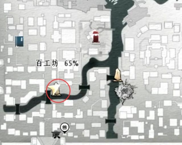 1、前往【百工坊】往右边走,图示位置左转;