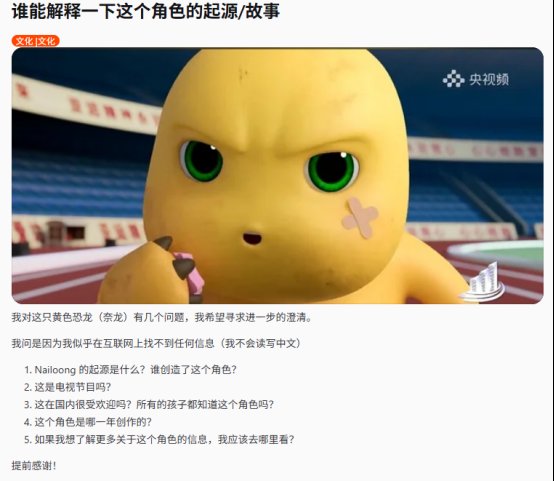 而国外的情况则是老外先接触到了奶龙表情包及周边产品,在不断的传播中渐渐混了个眼熟,但是他们并不知道奶龙是谁,也不知道这一形象的具体出处,只有很少一批人愿意在网上谈论有关他的一切。