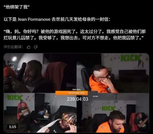 更逆天的还在后面,在法国政府和国际观众站在JP这边讨要说法时,JP的母亲却站出来当面为折磨自己儿子的主播辩护,甚至还补充道“他们给了我儿子一个美好的生活,我为他们感到骄傲,我要为此感谢他们”。