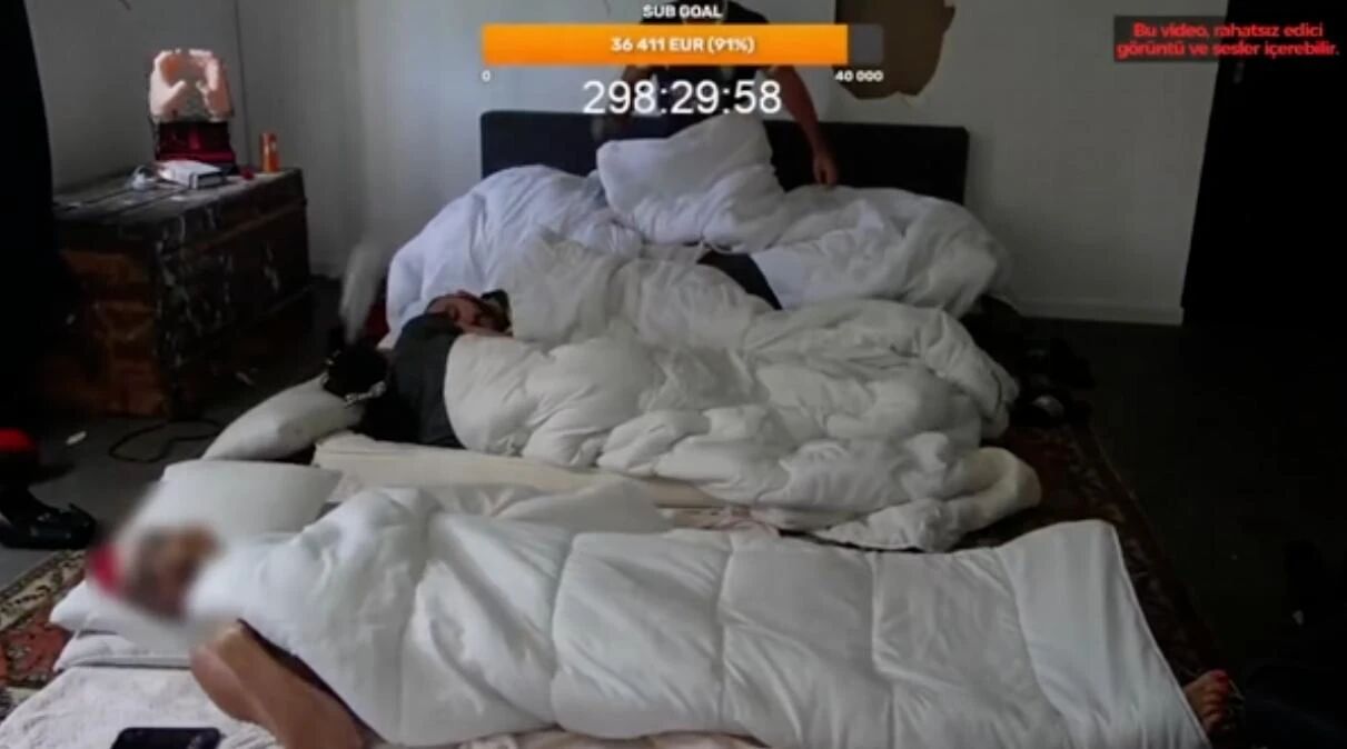 这些疯狂的狠活还会随着观众们的打赏而不断加码,而到了今年8月,他们开启了一场全天不中断的马拉松直播,什么时候能筹集到40000欧元(大约33万人民币)什么时候停止直播。