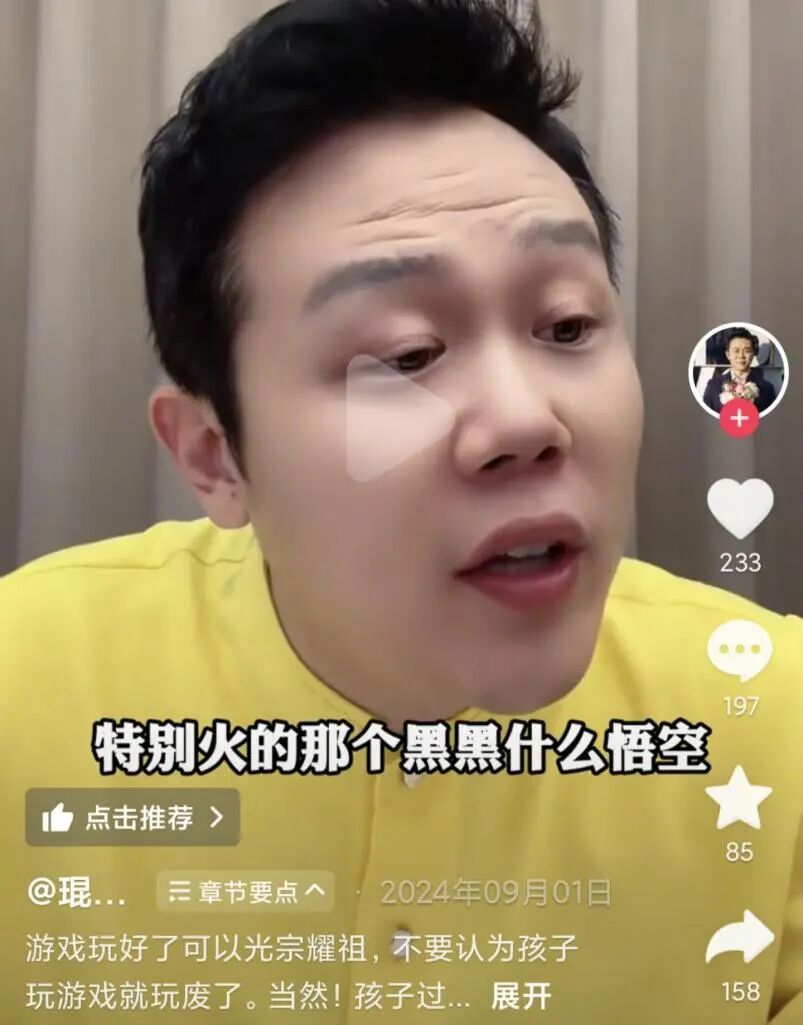 首先是逐步转换口风,表示:玩游戏不一定会导致孩子废了,冯骥(黑神话制作人)也喜欢玩游戏。