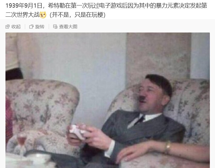其实反驳“都是游戏把我家孩子给害了”或者“游戏使人暴力”这种歪理很简单,各大网友都形成固定反驳公式了。毕竟电子游戏1952年才诞生,进入国内更是80年代以后了,如果真的“一切都是游戏的错”,那在这之前的孩子们应该都很爱学习吧,人类也很爱好和平吧....是的,据野史记载,希特勒就是因为玩了电子游戏,所以才发动的第二次世界大战!