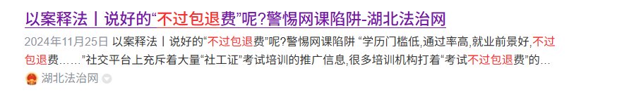 不仅如此,新闻中还提示这群教育机构喜欢钻空子,并不会与其签订正式的服务合同。这种我小时候上补习班时也遇到过,因为许多家长都将“教育”从“服务”的概念中剥离,并且进行一定程度的神化。所以许多都是交钱后将孩子送去,并不会签订合同。这就给了机构操作的空间,不过其实就算签订了合同也不保险,因为前段时间就有其他教育机构,以“考不过就退费”幌子吸引了许多人报名,但退费流程规定的十分复杂,基本上是退不了的。