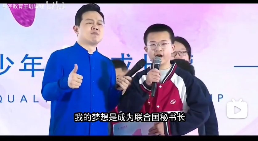 这个确实是真的,我去看了几段他们的视频,其中有一段令我印象非常深刻,大致就是让孩子来台上大声喊出自己长大后梦想成为什么(很俗套的环节),其中有一位孩子说的答案让我印象深刻,也让我确定这个所谓的教育专家根本缺乏基本常识,因为那孩子说:“长大后想成为联合国秘书长”