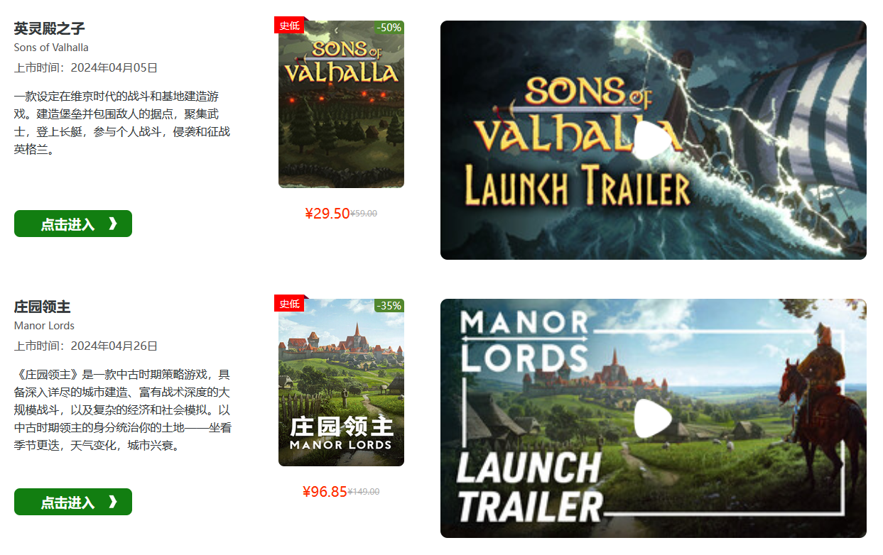 《庄园领主》史低:96.85元;