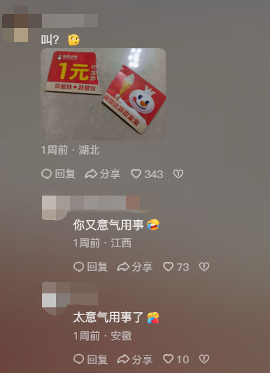 也有人非常阔绰地撕掉了蜜雪冰城一块钱优惠券,居然可以为了面子强行按原价购买,只能说哥们真是太性情了。