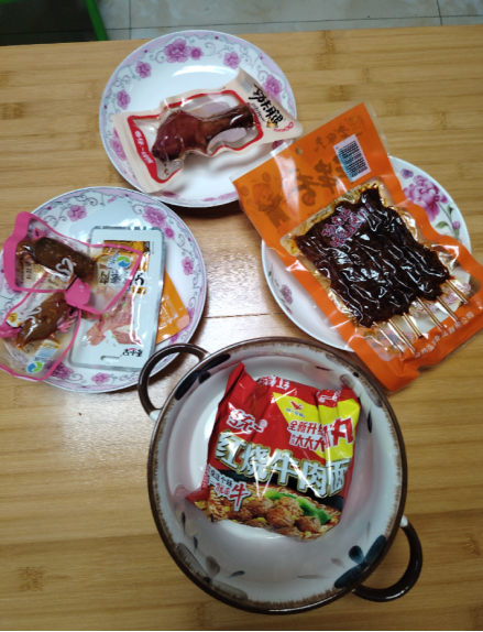 毕竟几百上千的正经高档料理不一定消费的起,三块五块的常规超市货还是能轻松拿捏的,于是更多的普通小零食,拼好饭这些价格亲民的吃的喝的也开始被网友拉近“高端炫富”的行列,凑出了各种奇葩意义的“四菜一汤”。