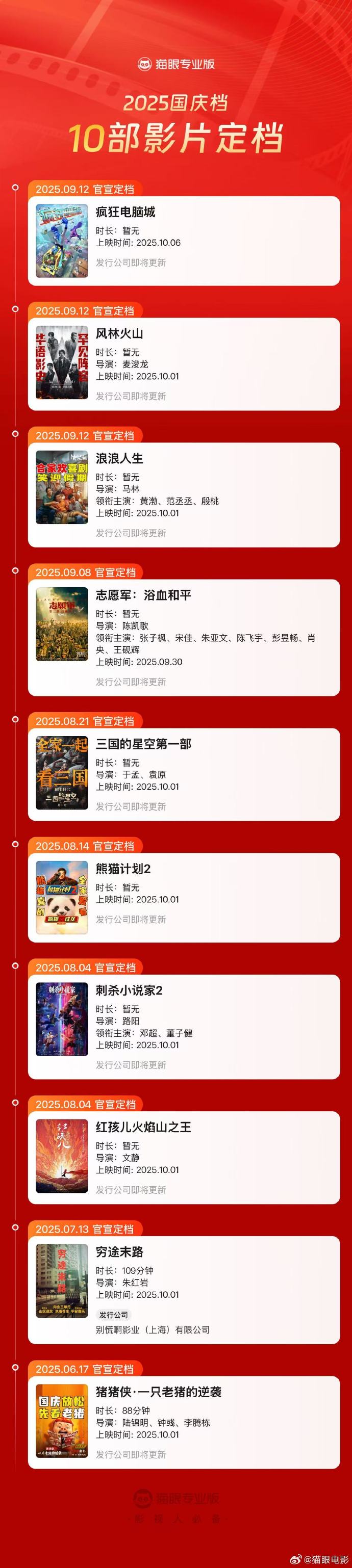 2025国庆档影片一览已经分享在上面,感兴趣的小伙伴可以参考本篇攻略,希望能为各位玩家们带来帮助,想要了解更多游戏攻略及资讯请持续关注多特手游。