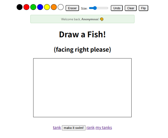 网站的页面布局其实非常简陋,你现在看到的就是它的全部基础界面了,至于玩法那更是简单,就是在屏幕中间的画框内画一条鱼,然后把它丢进一个的“大水缸”里散养就完事了。