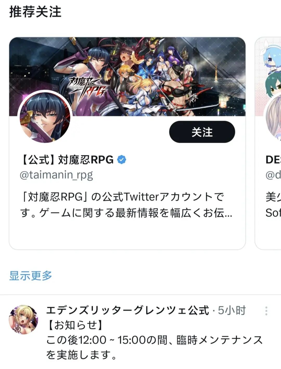 并且这款游戏的官推相关推荐下面也有《对魔忍》,所以综上所述,我可以做出判断,那就是这游戏是与对魔忍同一种类型的游戏,那位被NTR的老哥也确实被NTR了。