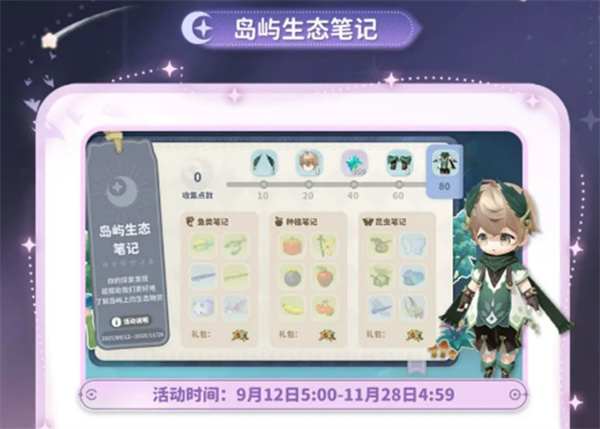 内容:收集鱼类、作物、昆虫等资源,累计积分