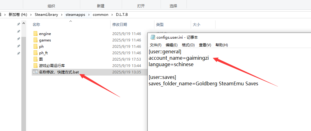 消逝的光芒:困兽改名字记事本方式打开“名称修改,快捷方式.bat”,找到account_name = "gaimingzi",把gaimingzi改成自己想要的名字。