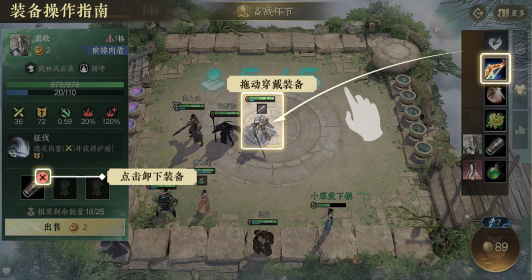 额外注意,当战斗开始后则无法将装备卸下来了哦~