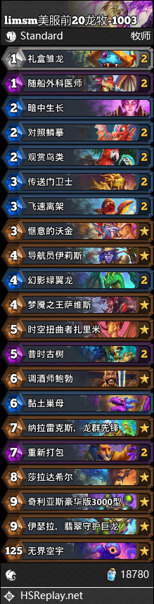 limsm美服前20龙牧,带了新卡传送门卫士,他说他做了很多尝试让龙牧能玩,传送门卫士这张卡完美契合龙牧卡组。