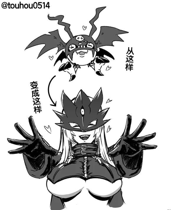 看过第一部动画的应该都很眼熟,这小玩意就是巴达兽(进化后天使兽)的黑暗版,跟在第一个Boss恶魔兽身边。那么使魔兽为啥会火呢?因为他进化后的贝尔斯塔兽是这样的: