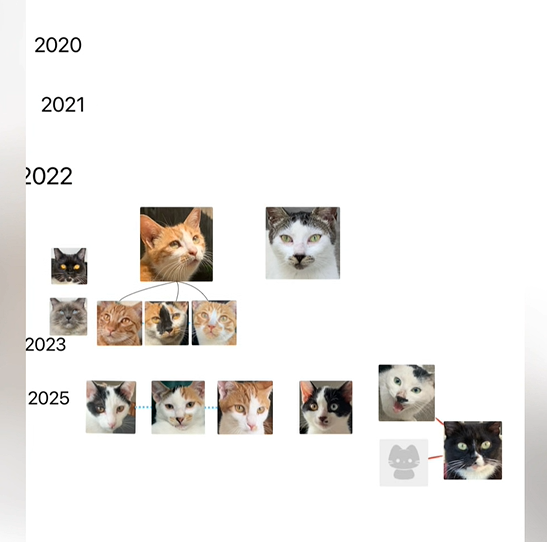 然后至2022年,耄耋这段时间不知道受了什么刺激,开始变得非常有攻击性,而且也不知道是不是耄耋动的手,白手套老公白猫在这一年也都神秘失踪......而白手套本猫与2024年消失。有传言称,是被圆头耄耋所害。但在消失前,白手套又生下了一直奶牛猫,下面我们称其为小白手套。