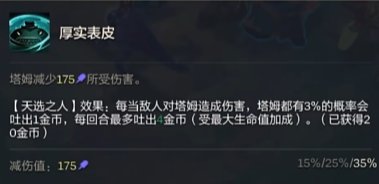 首先我们知道塔姆的技能是减伤,不同星级,减伤效果不一样,分别是15/25/35,而法强可以提升减伤效果,因此,给塔姆使用大天使法杖的话,随着时间的推移,减伤效果也会越来越强。到了后期塔姆的减伤效果达到一定数值时,几乎可以进行无限格挡。除了搭配大天使仗意外还可以搭配狂徒还有其他增加血量的装备来进行搭配。