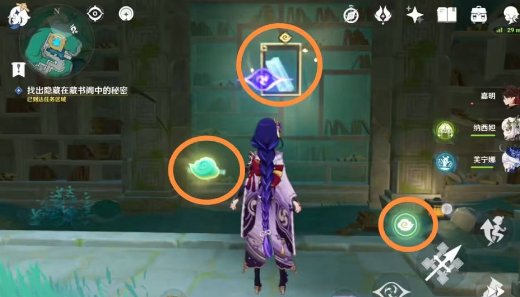 5、找到藏书阁中隐藏的秘密,四本书籍放在书架对应位置,如下图所示: