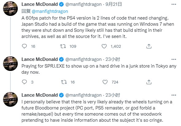 同时他个人认为,《血源》(PC移植版,PS5复刻版或重制版/续作)很可能已经在开发当中了。