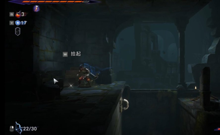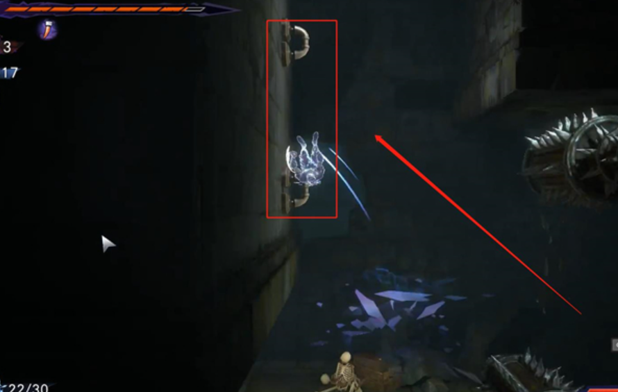 5、玩家需要从断口起跳,稍微下落一点接空中跳再接右冲,跑到右边的墙上,上下各有机关不要碰到。