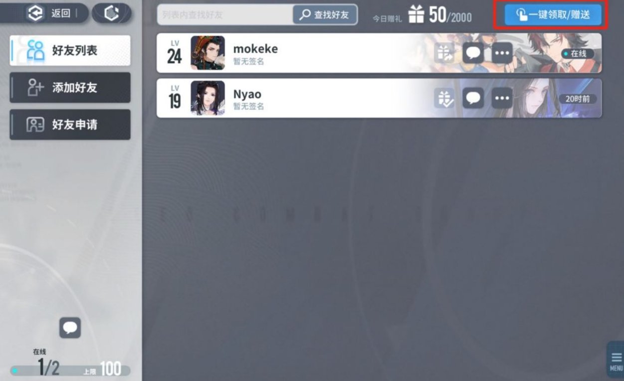 先说“友情勋章”的获取,在好友列表找到“一键领取/赠送”,就算别人不送你,你给好友送东西也能拿到“友情勋章”。每天上限赠送2000点,攒一攒能换到的东西也不少。