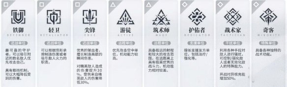 2、八种职业又根据特性分为方形、三角和菱形三大类别。
