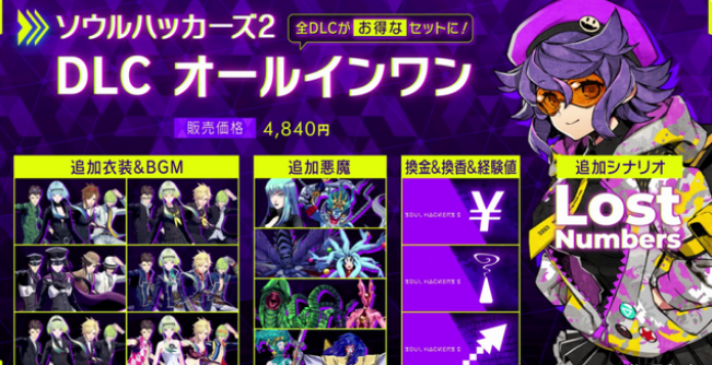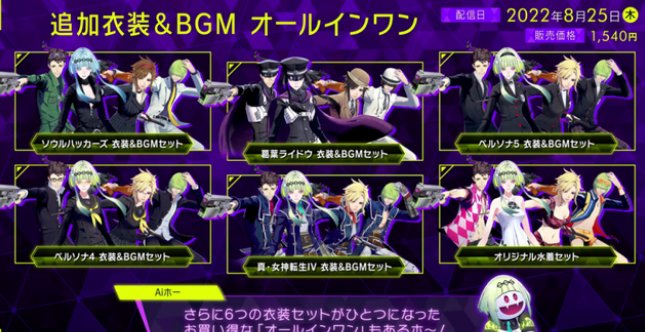 不仅如此,Atlus还公布了《灵魂骇客2》的追加DLC内容,其中不仅包含了角色服装以及BGM,同时还有一系列的恶魔组合以及追加剧情等。这部分内容,也将在8月25日同新作一起上线,这也无疑让新作的游戏内容变得更加丰富。
